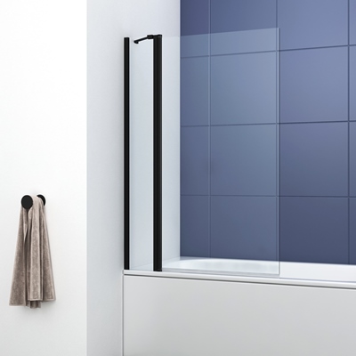nuie Square Black Framed Bath Screen With Fixed Return
